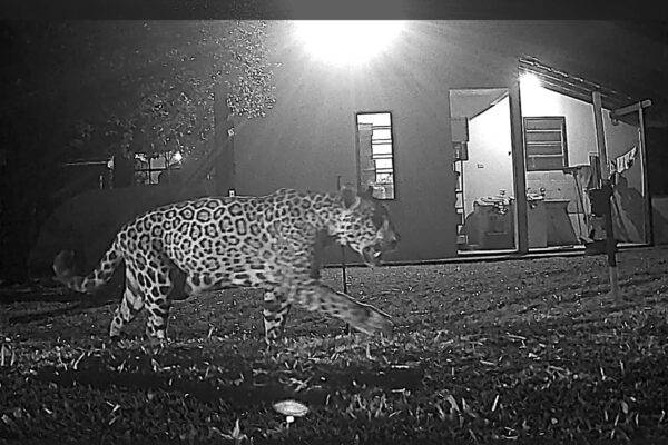 Cacira, uma fêmea provavelmente com filhote ainda em fase de amamentação, foi registrada passando em frente à sede do parque. Vem dar uma espiadinha! →